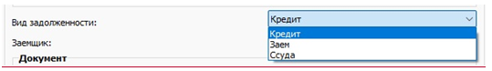 - при заполнении информации о выявленных отклонениях на счетах учета задолженности по кредитам, займам (ссудам) указывается вид задолженности путем выбора из предопределенного списка: