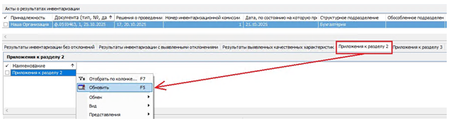 Решения о проведении инвентаризации. Для этого в контекстном меню заголовка раздела необходимо выполнить специальное действие
