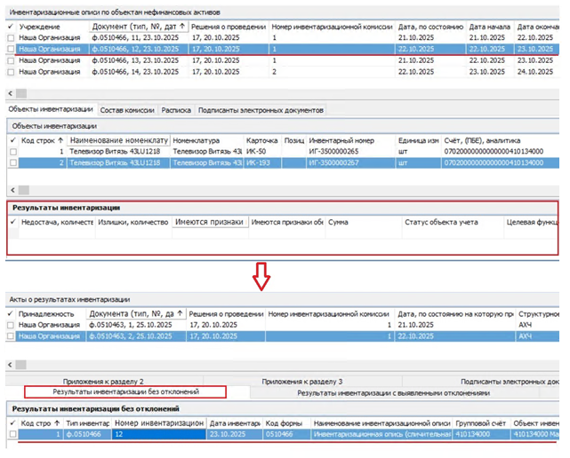 ЭД Акт о результатах инвентаризации (ф.0510463)
