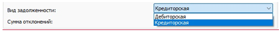 - при заполнении информации о выявленных отклонениях на счетах учета расчетов с покупателями, поставщиками, прочими кредиторами и дебиторами указывается вид задолженности путем выбора из предопределенного списка: