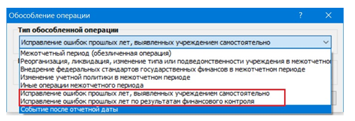 - «Исправление ошибок прошлых лет, выявленных учреждением самостоятельно»;