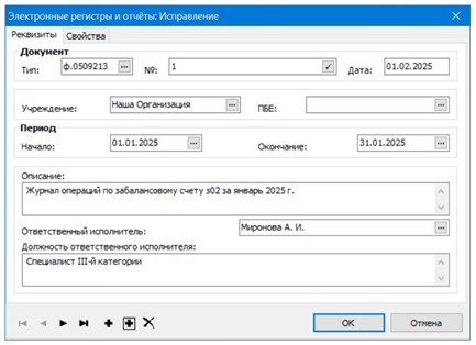 ЭД Журнал операций по забалансовому счету (ф.0509213)