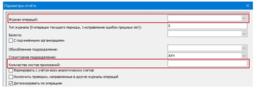 Если в параметре печати «Операции межотчётных периодов» указать значение «0», то в хозяйственные операции, по которым будет сформирован отчет, будут включены операции
