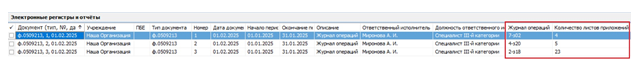 В Системе предусмотрена возможность задания таких параметров, как «Журнал операций» и «Количество листов приложений» индивидуально для каждой записи раздела.