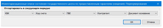 В параметрах данного действия указываются те атрибуты записей спецификации, по которым необходимо выполнить сортировку и, соответственно, перенумерацию строк данной спецификации, например:
