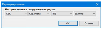 У пользователя есть возможность изменить порядок следования строк в каждой из вышеперечисленных спецификаций путем выполнения специального действия Перенумеровать, вызываемого в контекстном меню соответствующей спецификации.