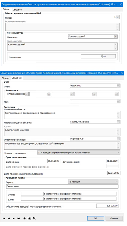 Сведения о признании объектов права пользования нефинансовыми активами (ф.0510478) применяются для принятия к бухгалтерскому учету объектов учета операционной аренды (права пользования нефинансовыми активами), учитываемых на соответствующих счетах аналитического учета счета 011140000 "Права пользования нефинансовыми активами" в соответствии с положениями федерального стандарта бухгалтерского учета для организаций государственного сектора "Аренда".